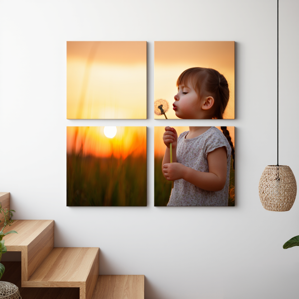 Dobd fel otthonod falát egy különleges, négy darabból álló négyzetes mozaik vászonképpel! Ez a szimmetrikus elrendezés elegáns és letisztult hatást kelt, miközben kedvenc fotóidat különleges módon emeli ki. Legyen szó családi pillanatokról, kismama fotóról vagy utazási emlékekről, a négyzet mozaik vászonkép minden helyiségben figyelemfelkeltő és stílusos dekorációt alkot.